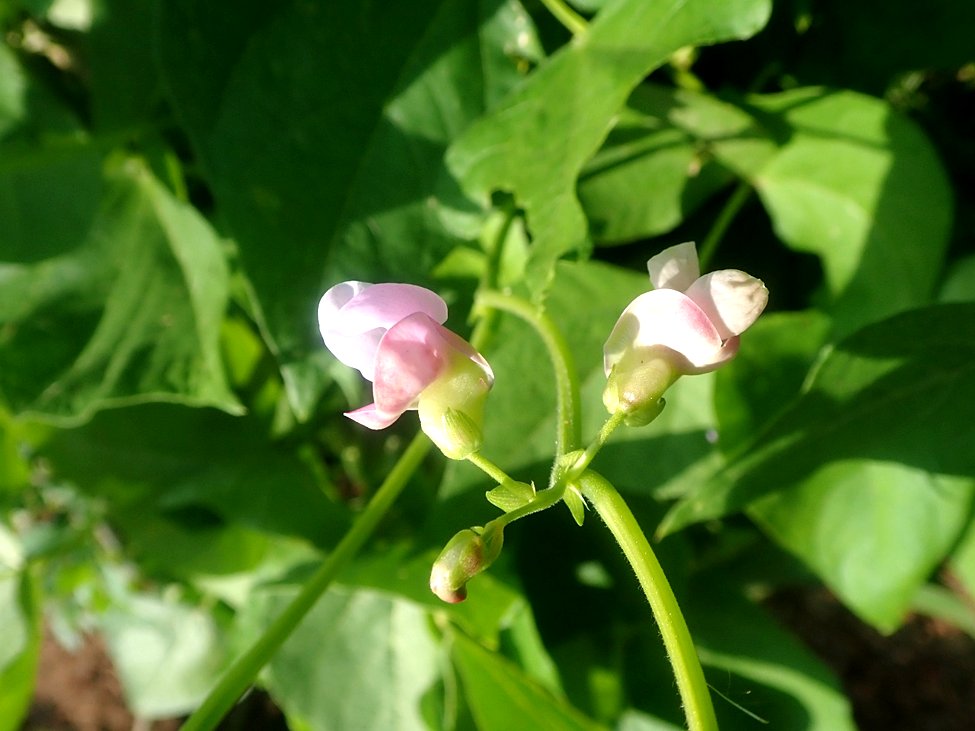 Sublimely beautiful pink flowers of common bean (Phaseolus vulgaris) “Cranberry Bush” variety. Brentwood Bay, July 13, 2023. Photo Richard Hebda